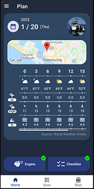 STEP 2Inspect Your Boat and Engines with ChecklistYou can plan your boating day, checking the conditions of the weather, wind and wave around your destination for 1 week. Checklist |