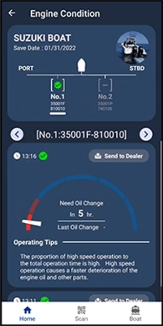 QR Code* Once you send the engine data to nearby dealer, they will check the data precisely and maintain for the next boating. |
